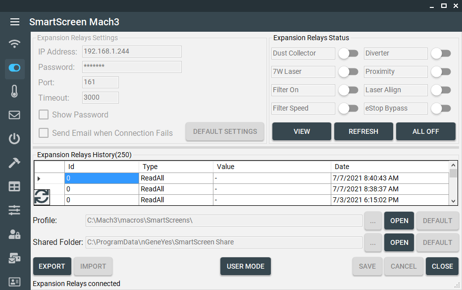 SmartScreens let you easily plug in the Ethernet expansion relays and control them from the user interface and the GCode.