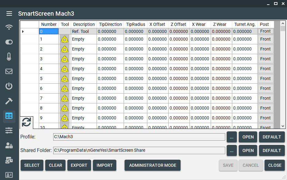 SmartScreens includes a new and improved Lathe Tool Table functionality, removing the quirkiness, and issues with the standard Mach3 interface.