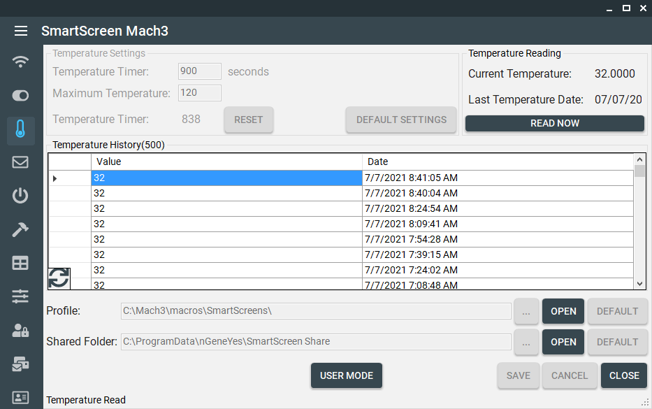 SmartScreens let you easily, through the Ethernet board, and monitor temperature, with email alerts from the user interface and the GCode.