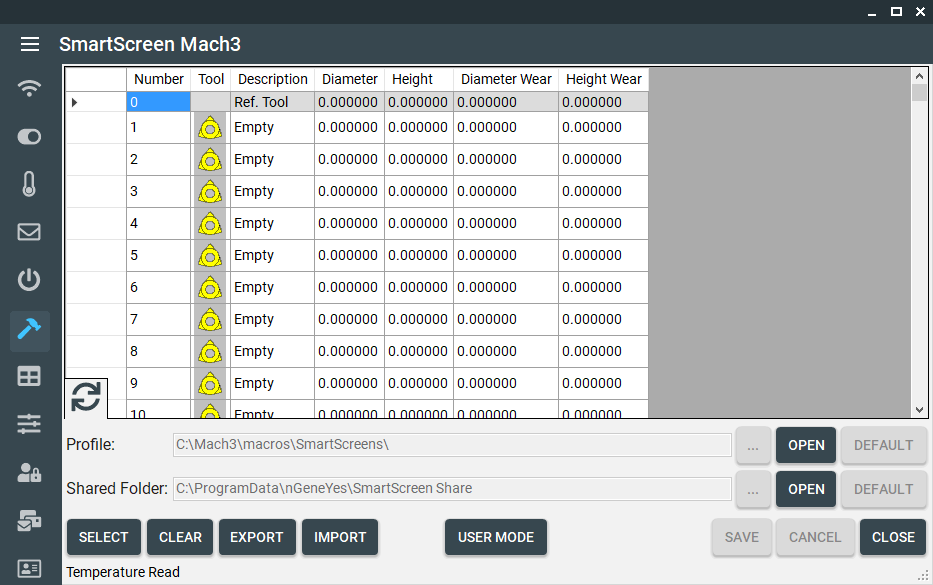 SmartScreens includes a new and improved Tool Table functionality, removing the quirkiness, and issues with the standard Mach3 interface.