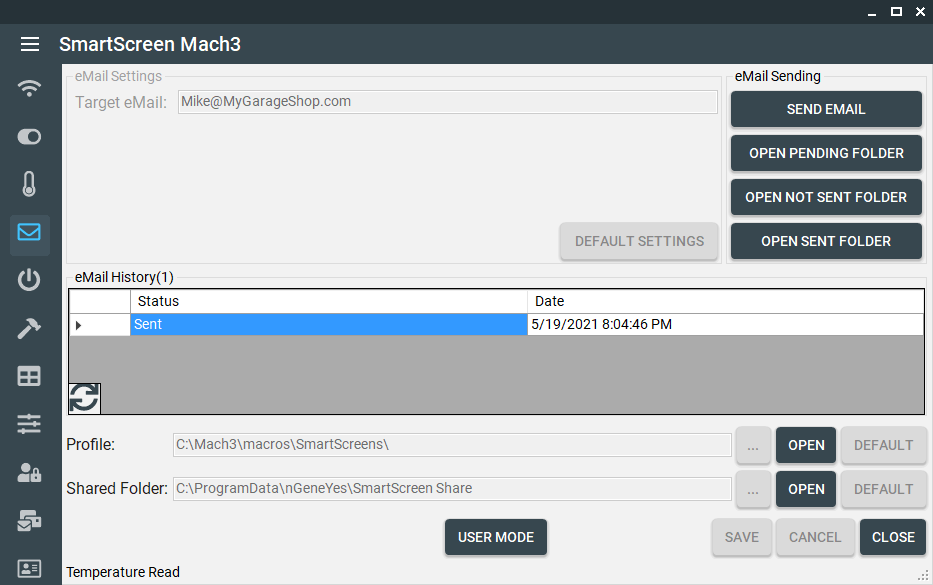 SmartScreens lets you receive eMail alerts about your system and its progress from the user interface and the GCode.